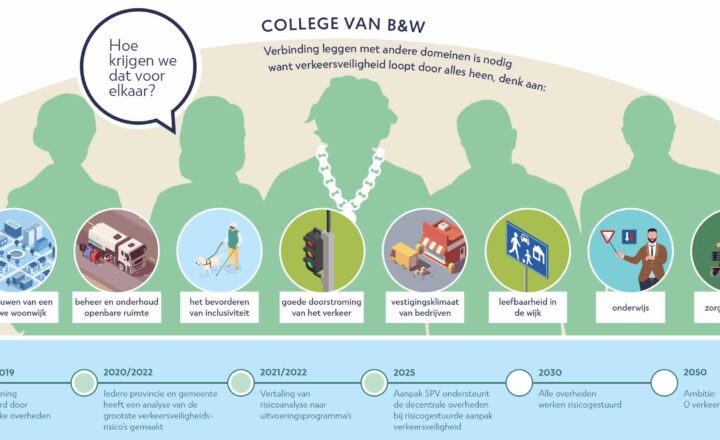 In drie pagina’s met korte teksten, linkjes en illustraties licht de infographic toe wat de verkeerswethouder te doen staat. Duidelijk wordt onder meer wat het nut is van de risicogestuurde aanpak en dat verkeersveiligheid door alle beleidsterreinen heen loopt.
